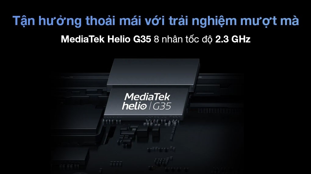 - Chip xử lý: MediaTek Helio G35 8 nhân