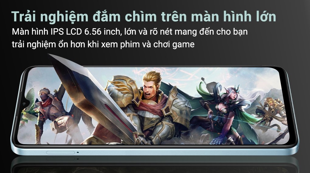 Màn hình có kích thước 6.56 inch của OPPO A18 mang đến cho bạn một không gian rộng lớn để tận hưởng những trải nghiệm giải trí tuyệt vời. Không chỉ có kích thước lớn, màn hình còn được trang bị tần số quét 90 Hz, giúp mọi hoạt động diễn ra mượt mà hơn khi cuộn trang web, chơi game và xem video.