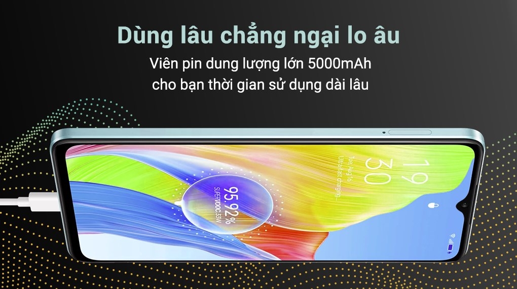 OPPO A18 hỗ trợ công suất sạc thấp 10 W, không chỉ đảm bảo sạc an toàn cho pin mà còn giúp bảo vệ thiết bị khỏi quá nhiệt. Mặc dù công suất sạc không cao, nhưng điều này có lợi ích làm giảm áp lực lên pin và kéo dài tuổi thọ của pin. Hơn nữa, công suất sạc thấp cũng giúp giảm thiểu tình trạng sạc quá nhanh và đảm bảo rằng pin sẽ luôn được sạc một cách an toàn.