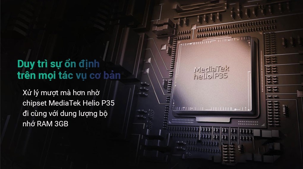 Hãng điện thoại Samsung đã trang bị trên máy con chip MediaTek Helio P35 với xung nhịp tối đa lên đến 2.3 GHz mang lại hiệu năng ổn định với đa số mọi tác vụ hằng ngày.