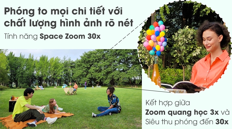 Sự kết hợp giữa ống kính zoom quang học 3X và thu phóng siêu phân giải lên đến 30X cho phép bạn phóng to mọi chi tiết ở khoảng cách xa đến lại gần hơn bạn mà không ảnh hưởng đến chất lượng hình ảnh.